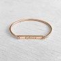 This elegant name bracelet allows up to 12 characters and is a great fashion accessory for your wrist. Wear it with your name, initials, birthdate or a favourite message. Great gift idea for your bridesmaids, your mum for Mothers Day or even get matching bracelets with your bestie! Choose from a variety of different fonts to further personalise your bracelet. This feminine bracelet is light enough for every day wear.